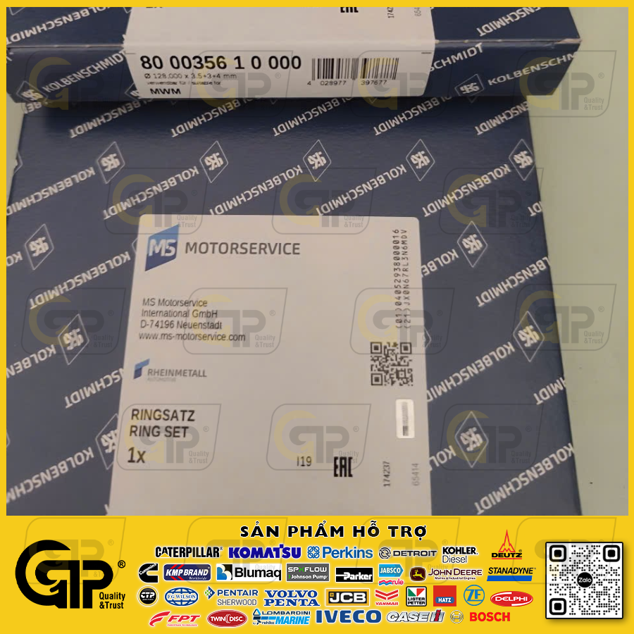 Mô tả:12163080 Set Of Piston Rings/ Bộ Xéc Măng (93 769 600), (80 00356 1 0 000) 128*3.5+3+4mm Thương hiệu: MS - MOTORSERVICE Model: # DEUTZ TBD12 234V