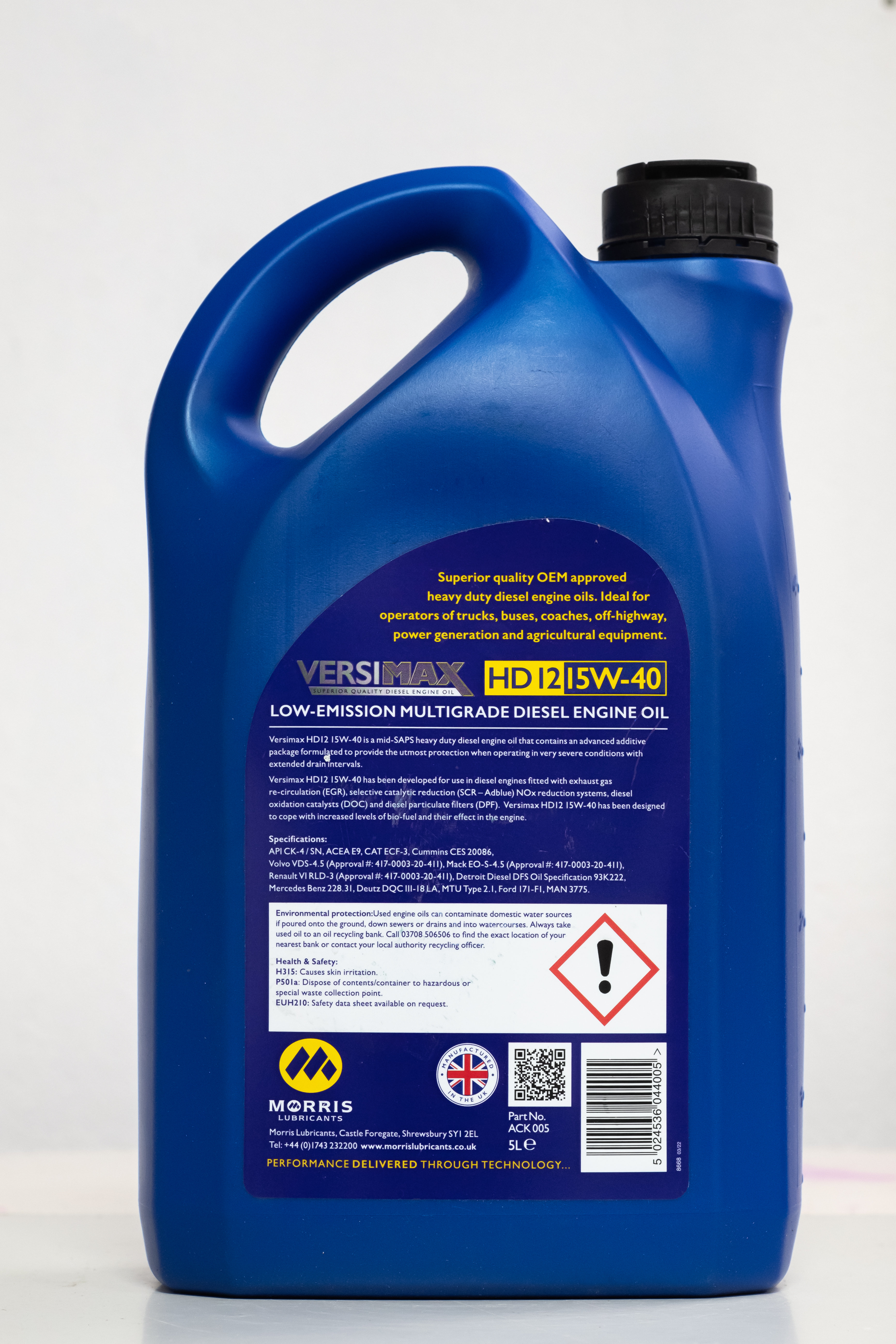 Versimax HD12 15W-40 has been developed for use in diesel engines fitted with exhaust gas re-circulation (EGR), selective catalytic reduction (SCR – Adblue) NOx reduction systems, diesel oxidation catalysts (DOC) and diesel particulate filters (DPF). Versimax HD12 15W-40 has been designed to cope with increased levels of bio-fuel and their effect in the engine.
