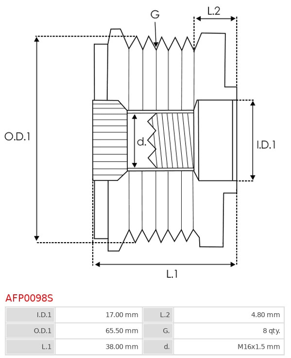 Tên sản phẩm:AFP0098S Alternator freewheel pulley