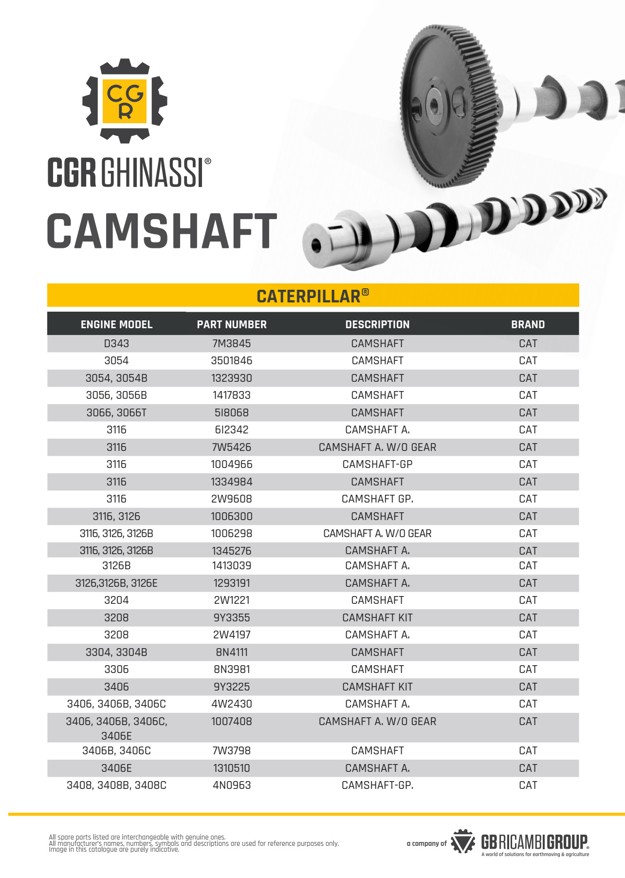 : 16G, 16H NA, 24H, 3406B, 3406C, 3408, 3408C, 3408E, 3412, 3412C, 3412E, 375, 375 L, 5080, 578, 587R, 589, 621F, 623E, 623F, 627B, 627F, 631E, 633E II, 637E, 651E, 657E, 769C, 769D, 771D, 773D, 775D